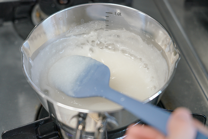 3.식힌 후 고운 체에 받쳐 찹쌀을 최대한 걸러주고 맑은 국물만 받아주세요.