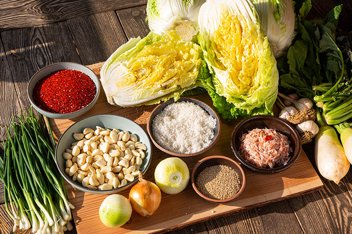 김치는 다양한 채소를 소금에 절인 후, 고추, 마늘, 생각과 같은